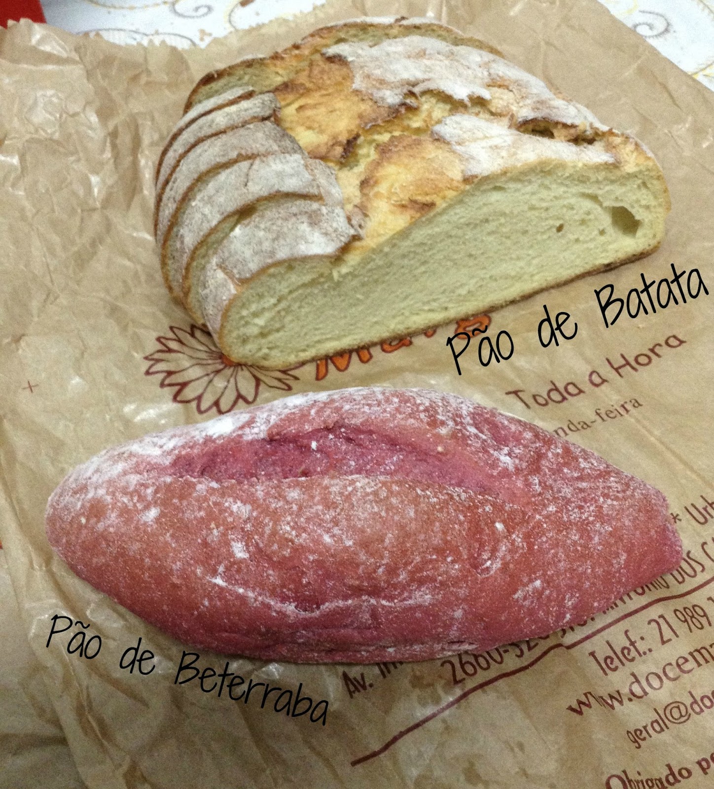 Quem me segue no Facebook de certeza que já viu estes pães esquisitos e coloridos. Frente ao ginásio há uma pastelaria “Doce Margarida” e tenho por hábito lá ir comprar o pão. Há dias fui surpreendida por estes dois. O pão de beterraba não é mau de todo. Mas o pão de batata, minha nossa é tão bom! Fofinho e quentinho é uma maravilha.