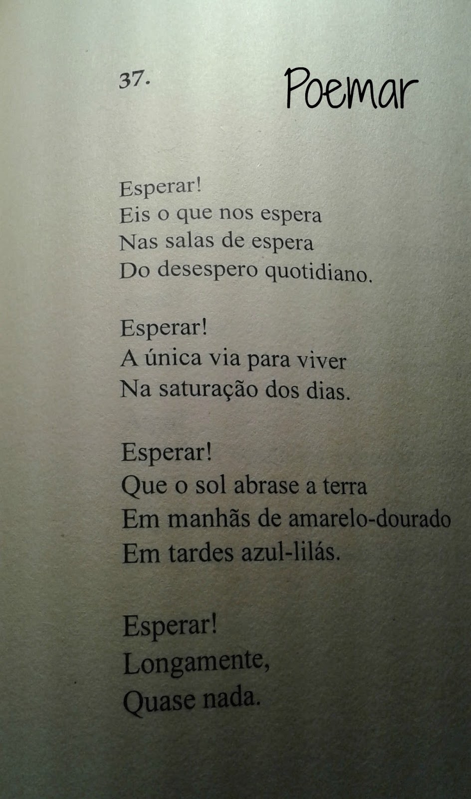 Este livro na minha opinião não deve ser lido de seguida, basta um poema por dia para acalmar o pensamento. A poesia faz-nos esquecer os problemas e acalma a alma, pelo menos foi assim que me senti ao ler Poemar.