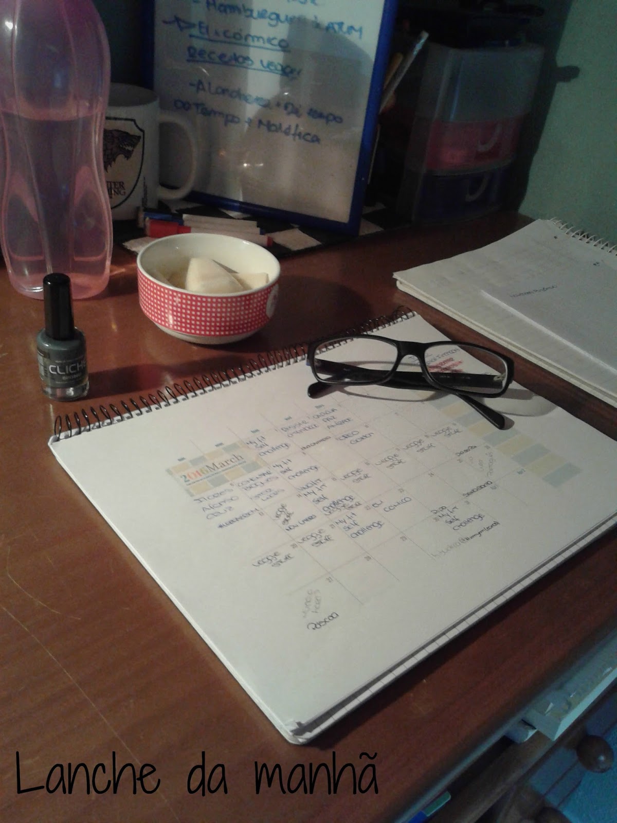Ao meio da manhã comi uma pêra com 3 amêndoas. Aqui está a minha secretária toda arranjadinha, enquanto estive no computador aproveitei e pintei as unhas, mais alguém faz isso?