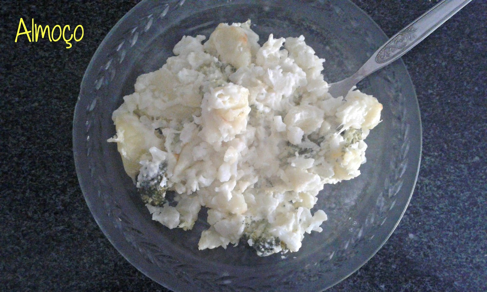 Que mixórdia é esta Tim? Ora tem batatas, brócolos e couve-flor. Digamos que é um empadão. Cozi tudo e depois cortei em pedaços grandes. Envolvi com créme fraiche (podem usar natas ou bechamel) e meti um pouco de queijo ralado. Foi ao forno e depois saiu este prato. Pode parecer pouco apelativa mas é super apetitoso.