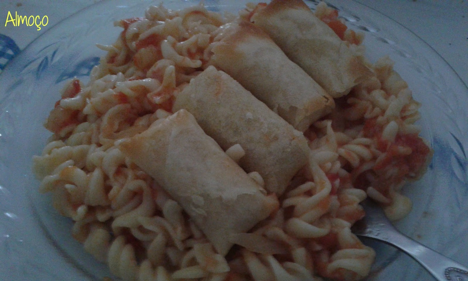 O almoço foi um prato estranho. Massa com molho de tomate caseiro com crepes de vegetais. Os crepes não foram fritos, foram ao forno 😉