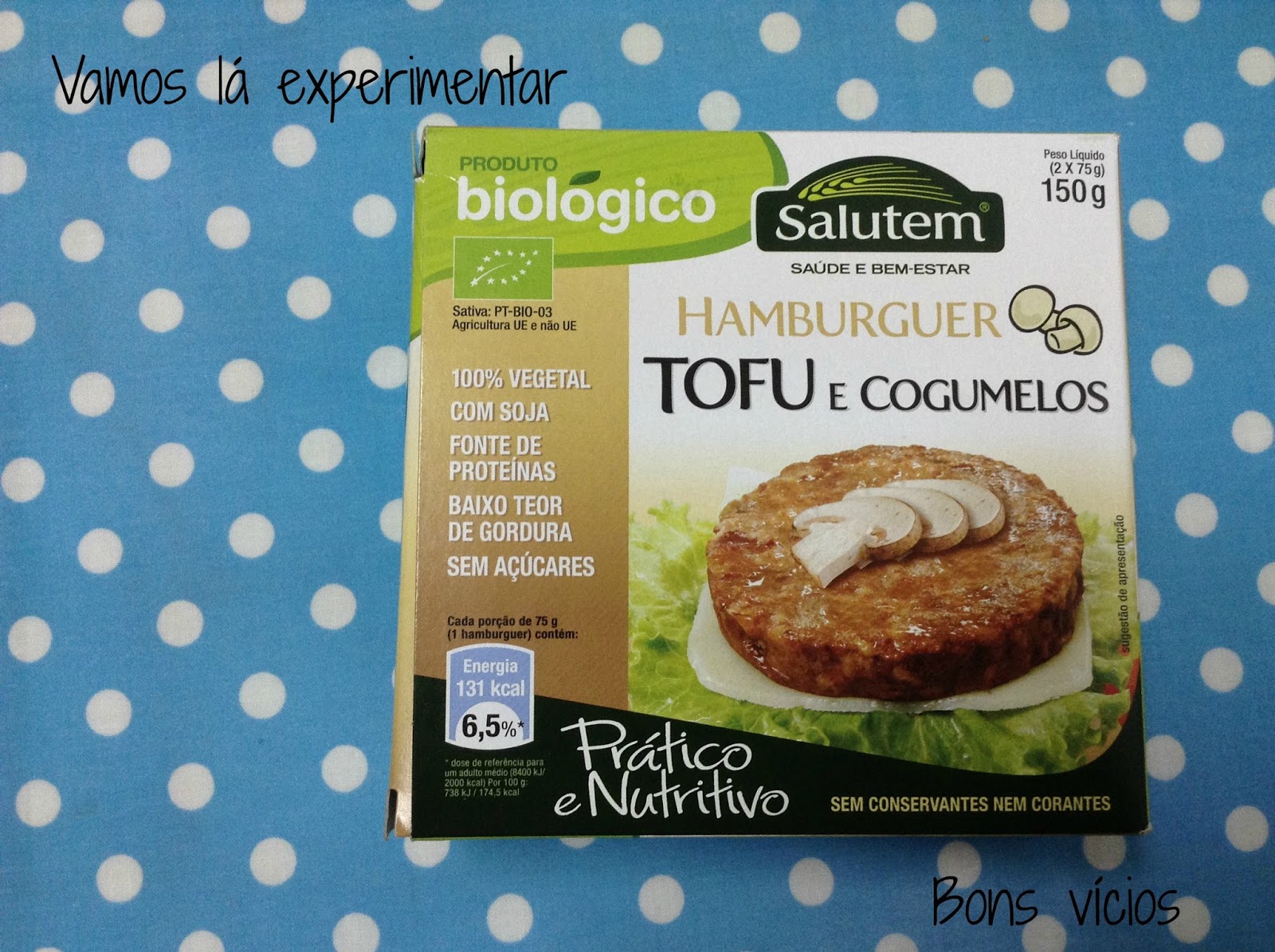 É tão bom que já voltei a comprar. Há de tofu e queijo e de tofu e algas. O de queijo também é bom mas o de algas tenho algum receio em experimentar. Para o cozinhar só precisam de colocar numa frigideira anti-aderente pois o próprio hambúrguer tem uma consistência que não deixa colar, mas se quiserem ponham um bocadinho de azeite. Ah, estas coisas só se compram em promoção…