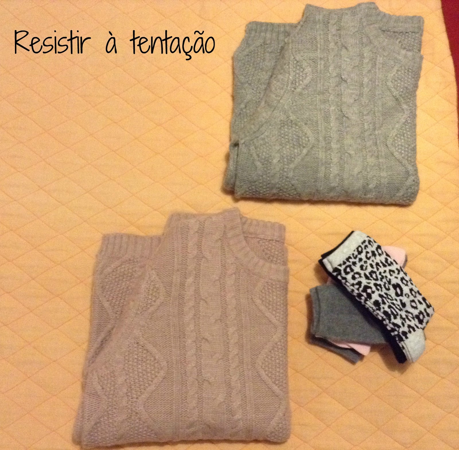 A minha mãe acabou por ficar com as meias e eu comprei 2 camisolas com o mesmo feitio mas de cores diferentes…